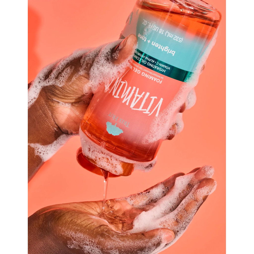 Water (Aqua, Eau), Sodium C14-16 Olefin Sulfonate, Cocamidopropyl Hydroxysultaine, Cocamidopropyl Betaine, Polysorbate 20, Ascorbic Acid, Lactic Acid, Citrus Aurantium Dulcis (Orange) Peel Oil, Actinidia Chinensis (Kiwi) Seed Oil, Persesa Gratissima (Avocado) Oil, Butyrospermum Parkii (Shea) Butter, Aloe Barbadensis Leaf Juice, Panthenol, Simmondsia Chinensis (Jojoba) Seed Oil, Tocopheryl Acetate, Lauryl Lactate, Sodium Phytate, Glycerin, Phenoxyethanol, Citric Acid, Fragrance (Parfum), Red 4 (CI 14700), Red 33 (CI 17200), Yellow 5 (CI 19140).