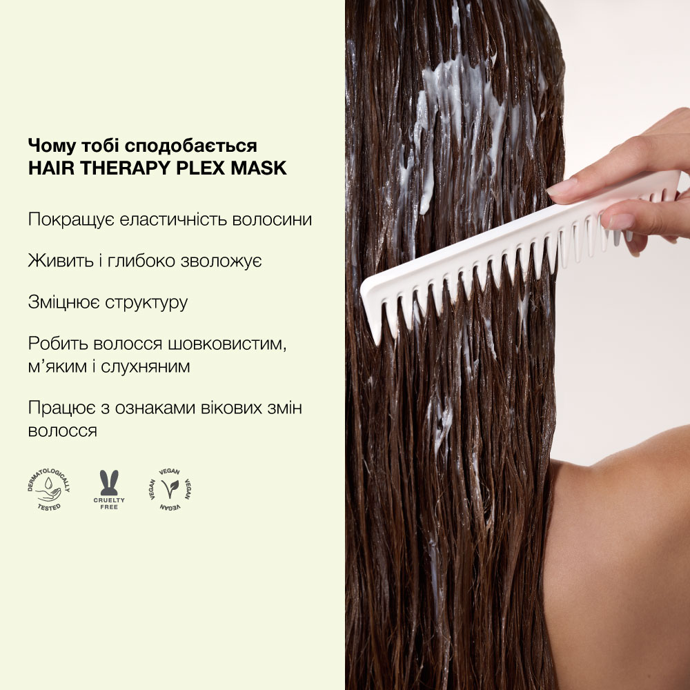 Hair Therapy PLEX Mask з технологією bond-building і ботанічною підтримкою допомагає відновити ці зв’язки, зміцнює полотно волосся та повертає йому природний блиск і здоровий вигляд.